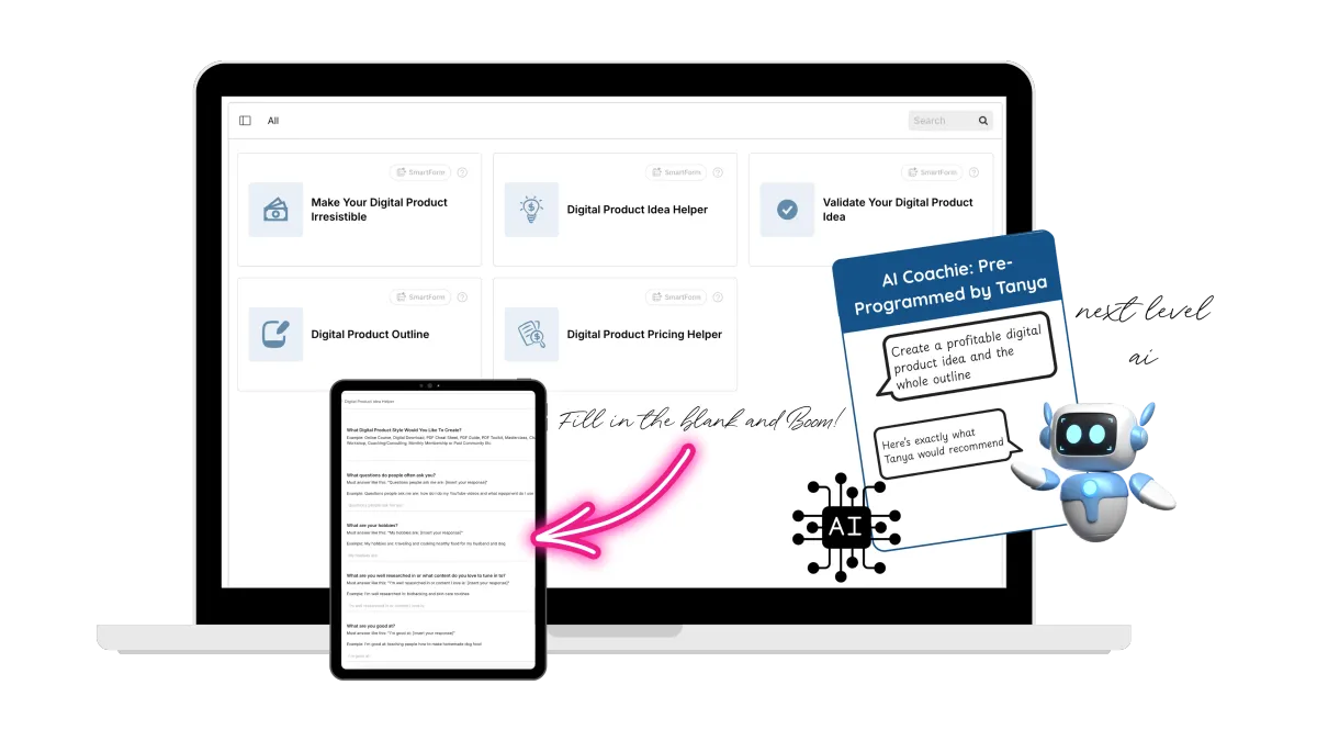 Crafted from selling over $11M in digital products, I’m giving you my pre-programmed AI Coach for FREE. It helps you come up with a profitable idea, validate it before you waste time creating it and makes it irresistible with the perfect words.